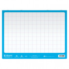 Couverture polypropylène double-face effaçable à sec : une face unie pour les calculs ou le dessin et une face quadrillée avec des carreaux agrandis pour l'écriture.